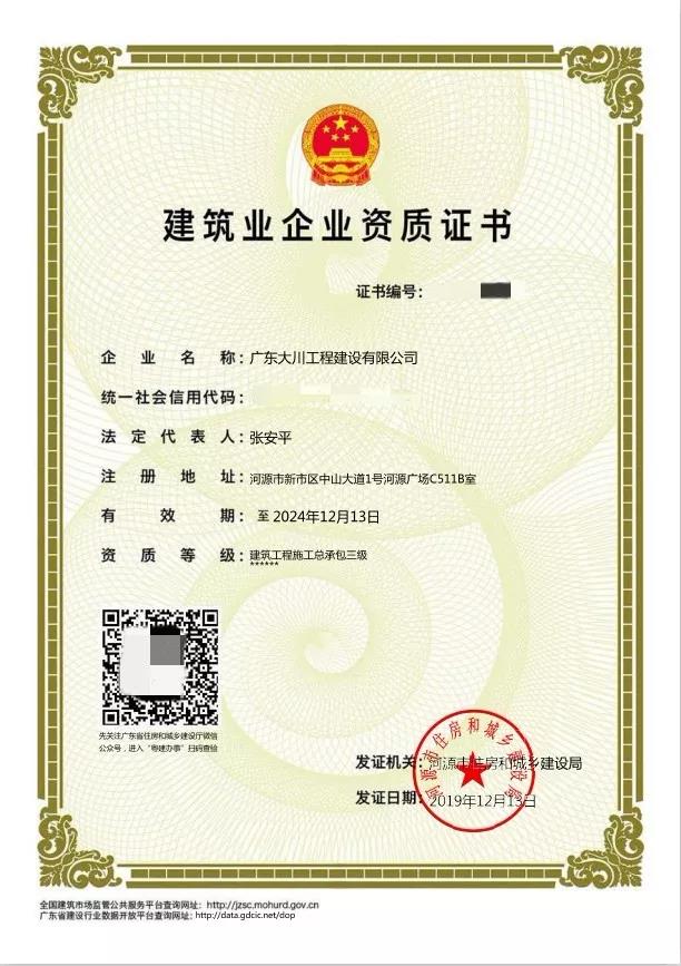 熱烈祝賀我司獲得建筑工程施工總承包三級資質(zhì)!